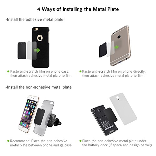 Easy Installtion,One-Handed Operation: Comes with 2 metal plates with adhesive tape to attach to mounting location. Within a split second you can take your cell phone with one hand, on and off the magnetic plate of this magnetic cell phone holder.