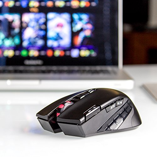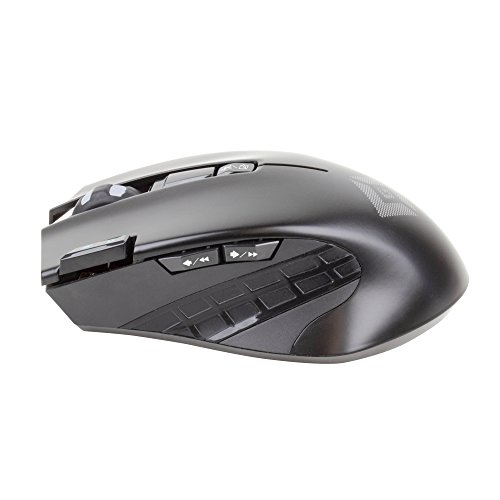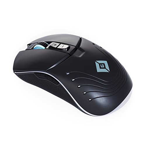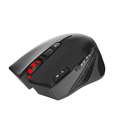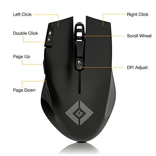 -. Feature : LED scroll wheel - switch between red, green, purple, and blue / 2.4G Wireless receiver range: 98 feet / Polling rate: 250Hz-500Hz / Resolution: 800/1600/2400/4000 adjustable DPI / Specific button functions for Gaming Mode and Video Control Mode - 7 buttons