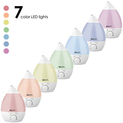Premium Humidifier - moisturizes the air for up to 14 hours of continuous operation, Built-in 7 color LED night light, (Yellow, orange, Red, Purple, Indigo, Blue, Green).