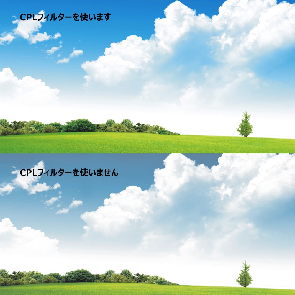 The CPL filter eliminates reflections from nonmetallic surfaces, absorbs the polarization of each light source, reduces reflections, and increases the contrast and saturation of the image.