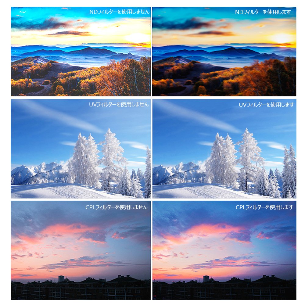 It is an essential accessory for taking landscape photographs by outstanding the original color, expressing the original vivid color of the landscape, removing unnecessary light reflections, cutting haze and increasing saturation