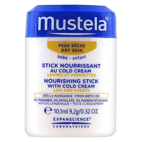 Mustela's Nourishing Stick with Cold Cream is a travel-friendly moisturizer that provides heavy-duty skin protection to relieve your baby's dry cheeks and lips. Rich moisturizer glides on gently and forms a protective barrier against environmental conditions such as cold air and wind. Enriched with nourishing natural Cold Cream, lipid-replenishing ceramides, and softening and soothing Shea Butter. Composed of 96% plant-based ingredients and formulated with Avocado Perseose, a patented natural ingredient to help protect baby's delicate skin. Paraben, Phthalate and Phenoxyethanol free. Hypoallergenic and specially formulated to minimize the risk of allergic reactions. Tested under pediatric and dermatological control.