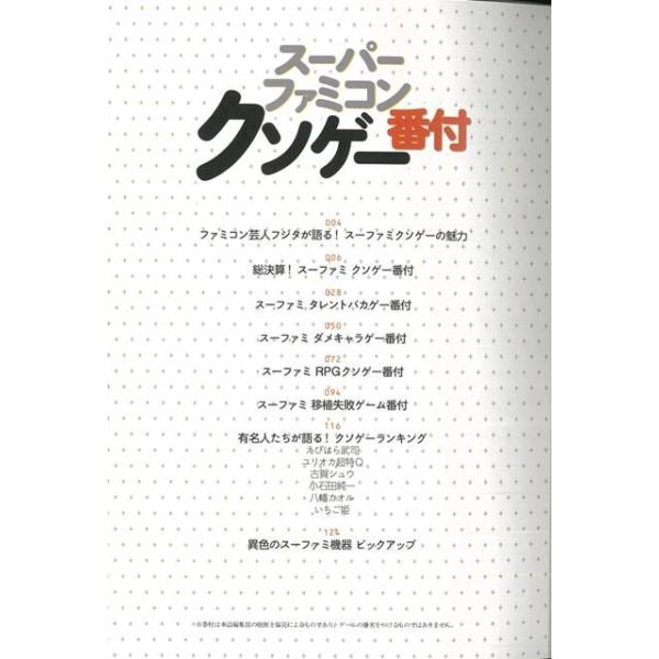【商品基本情報】 商品名称:スーパーファミコンクソゲー番付 著者/出版社:ファミコン芸人フジタ/ファミコン芸人フジタ 初版発行日:2017/06/25 サイズ:A5判 ページ数:127 ISBN/JAN:9784865117097/4528189534834