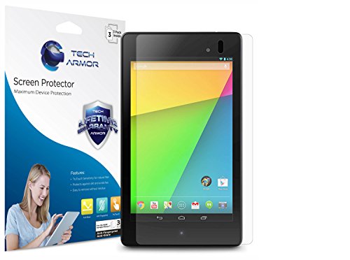 -. Binding : Personal Computers -. Brand : Tech Armor -. Feature : High Definition (HD) Transparency Film that ensures maximum resolution / TruTouch Sensitivity for a natural feel and provides flawless touch screen accuracy / Protects your display from unwanted scratches / repels dust and will reduce signs of daily wear / Made from the highest quality Japanese PET Film with 100% Bubble Free Adhesives for easy installation and no residue when removed -. Label : Tech Armor -. Manufacturer : Tech Armor -. PackageQuantity : 3 -. ProductGroup : Personal Computer -. ProductTypeName : COMPUTER_ADD_ON -. Publisher : Tech Armor -. Studio : Tech Armor -. Title : Tech Armor Nexus 7 FHD (2nd GENERATION) 2013 Tablet Premium High Definition (HD) Clear Screen Protector with Lifetime Replacement Warranty [3-PACK] - Retail Packaging