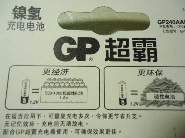 1.GP super NiMH rechargeable batteries are designed to meet the needs of power-hungry high-tech products, such as digital cameras (compared to alkaline batteries, or more than three times the number of pictures, and use longer), MD machines, MP3 machines and other portable electronic devices