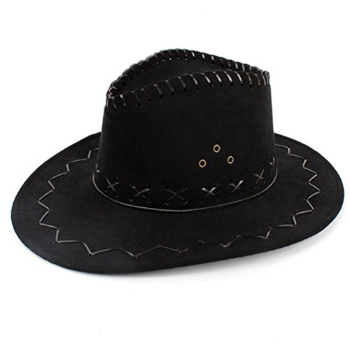 -. Feature : Fantastic and Novelty Cowboy Hat / Fit Head Girth: 58-61cm / 22 3/4 - 24inches;Brim/Visor Size: 7cm / 2 3/4 inches / Material: Faux Suede; Style: Cowboy / Suitable for: Man and women; Size: One Size / Ideal for cowboy and Western fancy dress costumes.Also comes with adjustable cord for flexible & comfortable fit