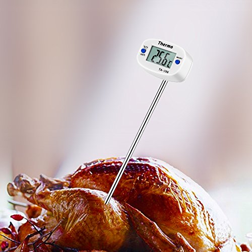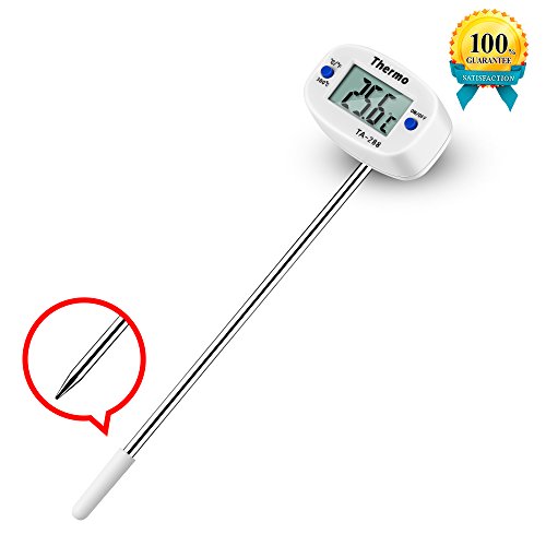 Wide Range: Thermo digital cooking thermometer with temperature range of -58°F ~ 572°F (-50°C ~ 300°C); Celsius/Fahrenheit switchable; Perfect for indoor outdoor cooking, grilling, BBQ and so on; NEVER use the thermometer in a closed oven!!