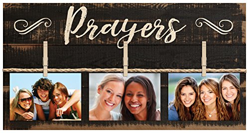 Prayers Script Black 11 x 20 Inch Solid Pine Wood Clothesline Clipboard Photo and Momento Display