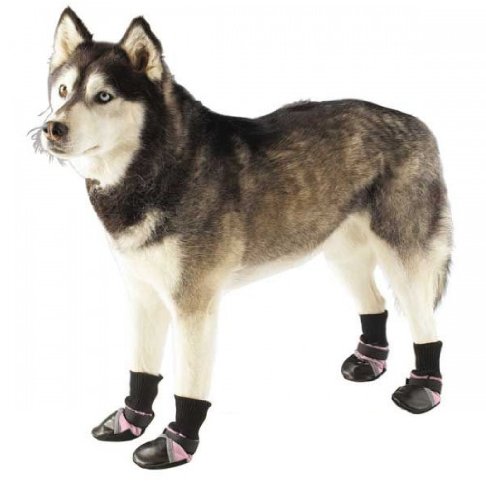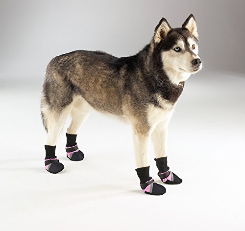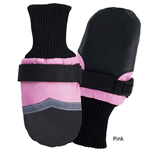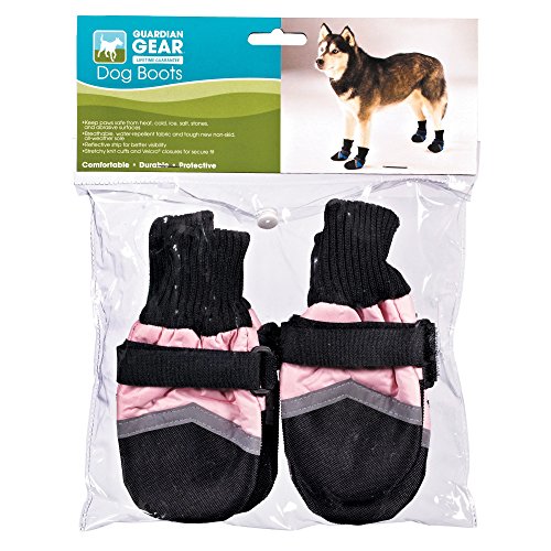 Protect your dog's feet from the elements. Guardian Gear Dogs Boots provide durable, long-lasting protection during any outdoor activity. Boots keep paws safe and dry and help prevent injuries from heat, cold, ice, salt, stones and abrasive surfaces. Made of breathable, water-repellent fabric with tough vinyl soles and toes. Stretchy, ribbed knit cuffs add comfort, and adjustable Velcro straps keep boots snug and secure. Decorative reflective strip increases visibility. Colors available: Blue with Black trim; Pink with black trim; Yellow with black trim. Available sizes: XXX-Small fits up to 1 1/2 in; XX-Small fits 2 1/4 in; X-Small fits 2 3/4 in; Small fits 3 1/4 in; Medium fits 3 3/4 in; Large fits 4 1/4 in; X-Large fits 4 3/4 in; XX-Large fits 5 1/2 in.