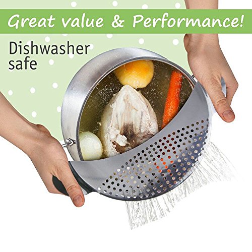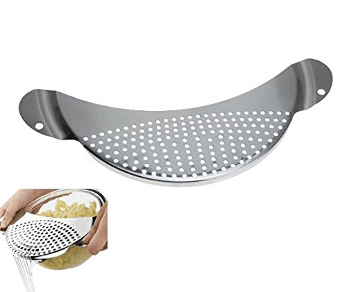 - Easy to use,strong-grip clip will keep the colander in place even when straining heavy foods.Allows you to grip the pot or pan with both hands while straining,eliminating awkward spills.