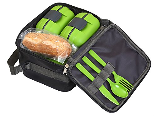 The lunch bag also offers some extra space for taking along some toast, bread or cereals...or even using just 1 lunch box and adding an apple with snacks...It can be used in so many ways just be creative and enjoy a tempting healthy fresh lunch. All you have to do is pack your favorite food into those stylish and modern containers which will keep them fresh and tasty, warm or cold till mealtime rolls around.