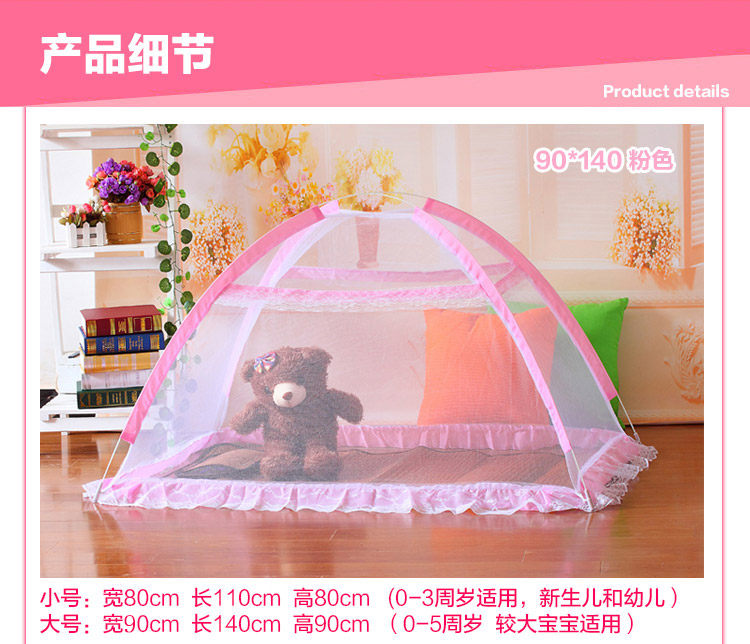 免安装落地宝宝蚊帐罩婴儿床蚊帐蒙古包带支架儿童小孩无底可折叠