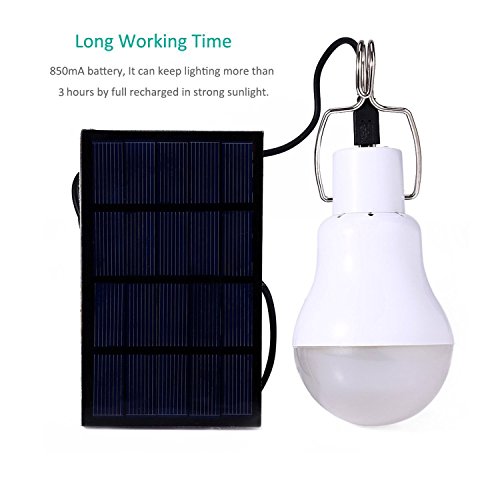 - ►【Save Money】This solar light relies on solar energy, which is clean, endless and environment-friendly. In daytime, when there is sunshine, the solar panel can convert the solar energy to electric energy and store it in the battery. The charged bulb can be used as a mobile lighting lamp.
