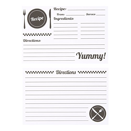 60-Count Kitchen Recipe Cards - Double-Sided Recipe Note Cards with Black and White Retro Design, 4 x 6 Inches