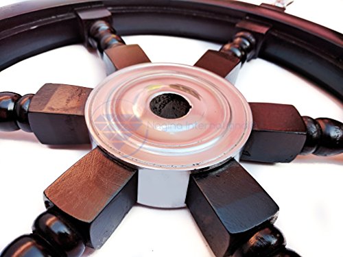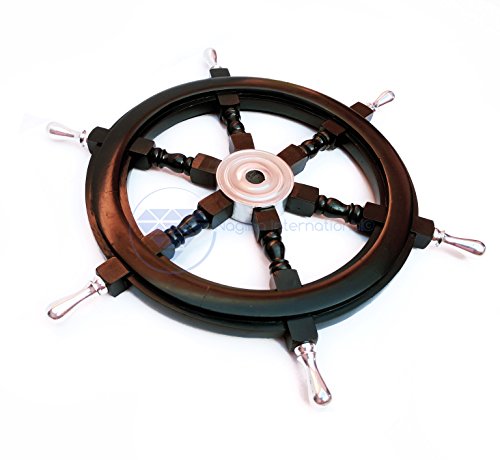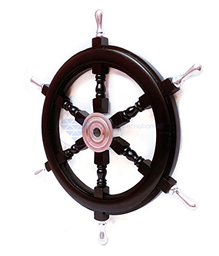 Nagina International's Nautical Hand Crafted Wooden Premium Ship's Wheel! The Exclusive pirate's decor wall accent/sculptures. The exclusive Nautical Ship's wheel range is sold solely by Nagina International and such quality shall never be found through any other vendor as the product is right out of the factory. Built of out true solid hardwood(Indian Rosewood), we bring you the best possible craftsmanship with the quality material being used in the reproductions of these beautiful Nautical Ship Wheels. Being in the Nautical Industry for several decades we have reached a point where we never compromise the quality of Nautical Ship Wheels which we offer to our customers! The Premium Nautical Ship Wheels are perfect Nautical Art Piece with quality craftsmanship and material! Built with dedication and precision by our experienced Artisans at Nagina International. The Premium Nautical Ship Wheels make great wall decor and decorative accent for Pirate's Theme Lovers! The Beautiful Hand Crafted Nautical Ship Wheels are going to leave you and your loved in a complete awe and crave for wanting one! The Nautical Ship Wheels do seem better in person as you are able to fee and grasp the quality and material! The Exclusive Nautical Wall Decor are easy to hang on a wall as the needed supplies are attached to the product itself! Wall mounting hooks and screws are supplied. The exclusive range widens from Clocks and Mirrors through Photo Frames (Photographic Frames). Keep Exploring Nagina International for impressive and lovely Decor! I'm sure you will find something for you and your loved ones!Feature