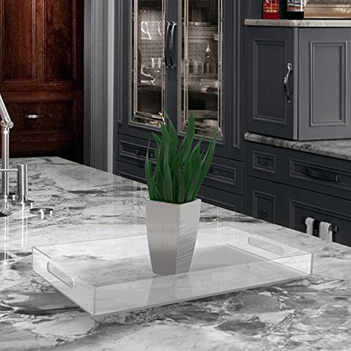 - MULTI-PURPOSE CLEAR SERVING TRAY – Wonderful organizer tray for by the door, on your desk, or in the bathroom. Great for the kitchen and bar. Also seamlessly transport glasses, plates, bowls, beverages, appetizers, coffee, wine and more both indoor and outdoors.
