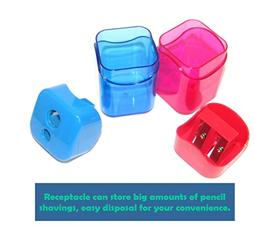 - COVER AND RECEPTACLE! Square shaped sharpener, with shavings receptacle for convenient disposal, simply pull off the lid to empty the pencil shavings.