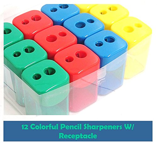 - 4 STRIKING COLORS: Pack of 12 sharpeners, comes in 4 striking Red, Blue, Green, and Yellow colors!