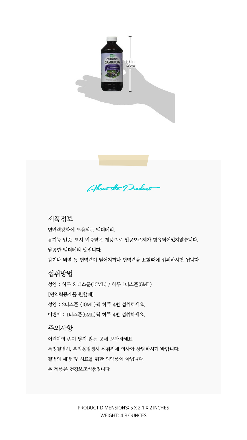 네이쳐스 웨이, 삼부커스, 블랙 엘더베리, 목감기 시럽, 오리지널 시럽, 8 액량 온스 (240 ml)
