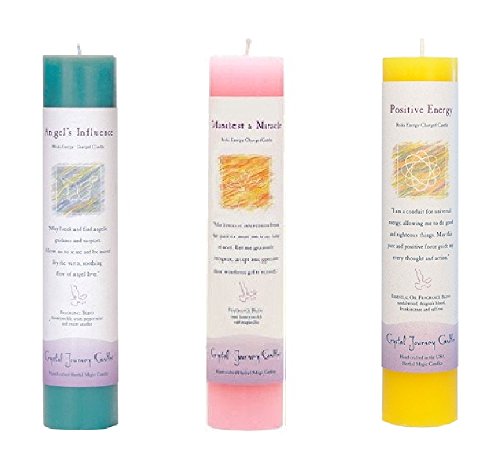 Crystal Journey Reiki Charged Herbal Magic Pillar Candle Bundle (Angel's Influence, Manifest a Miracle, Positive Energy)