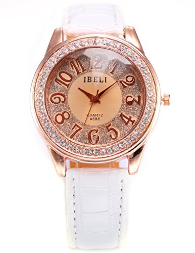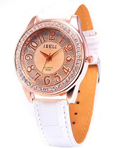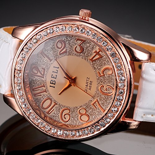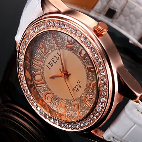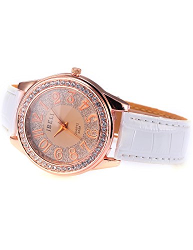 AMPM24 Fashion Bling Crystal Women Lady Girl Analog White Leather Quartz Watch Gift WAA246