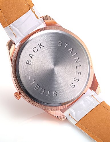 Round watch dial with arabic numerals hour indexes. Elegant crystal around the case. Durable stainless steel back & buckle.