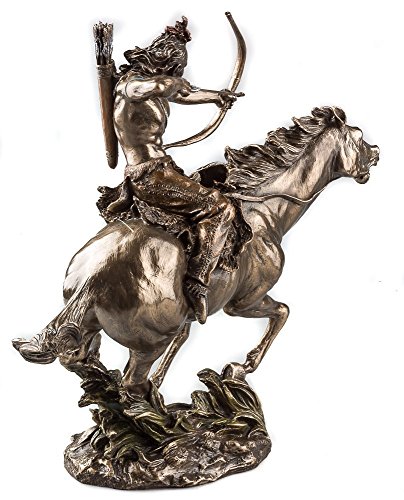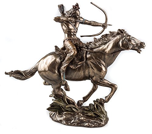 Mohican Warrior Statue on Horseback Shooting Arrow Sculpture Figurine