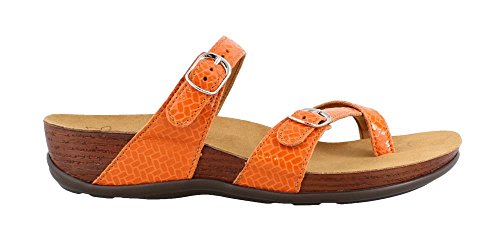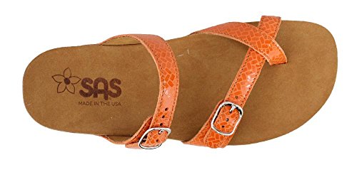 Studio : SAS Publisher : SAS Binding : Shoes Product Description Women's SAS, Shelly Slide on Sandals These slides are offer a stylish look and a customized fit! Leather upper Slide on style with two adjustable buckles to provide a customized fit, back strap is elasticized for a flexible fit Fabric linings Contoured lightweight insole is covered with a full length shock absorbing cushion and arch support for added comfrot 1 1/4 inch hand polished heel Manmade roomy outsole for added stability with Soft Step heel for extra support. Heel Height of 1.25 inches 0