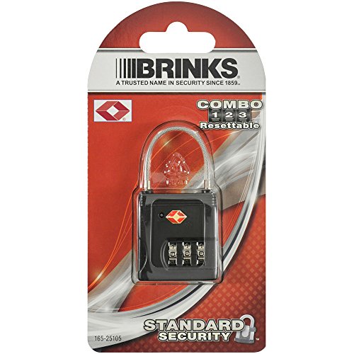 Brinks 165-25105 25mm Zinc Resettable Combination TSA Padlock with Cable, Black