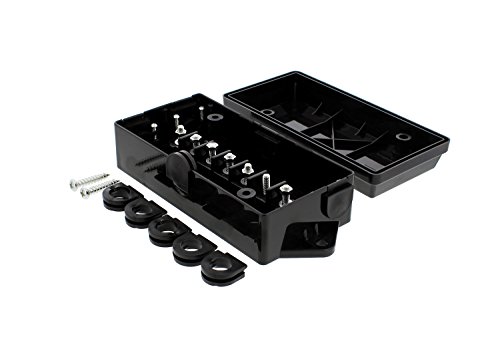 Durable: Heavy-duty black plastic box with cover; 40°F (105°C) dry and 15°F (60°C) wet; 30 Mil AWG Copper, 2/10-1/12-4/14