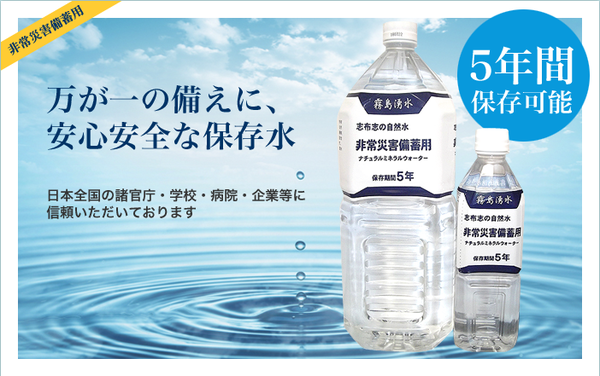 【商品名】霧島湧水 志布志の自然水 災害備蓄用5年保存水 ナチュラルミネラルウォーター ペットボトル(PET)