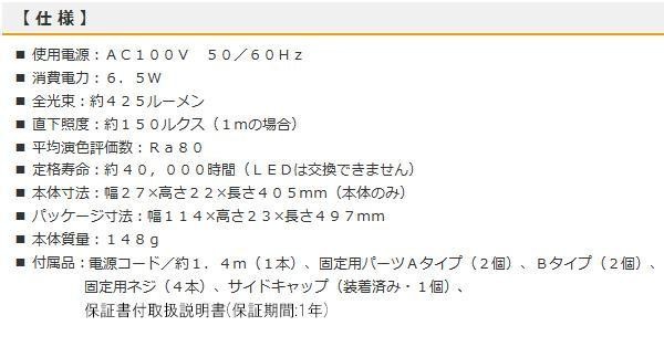 省電力・長寿命のLEDライトです。付属の固定用パーツ、ネジを使えば、簡単に取り付けられます。別売りのオプショナルパーツを使えば、本体を含め最大12台まで連結できます。 製造国:中国 ※サプライヤー直送品 ご注文後2~3営業日後の出荷となります【商品名】オーム電機 OHM スイッチ式 LEDエコスリム 昼光色 6.5W 405mm LT-NLD65D-HN