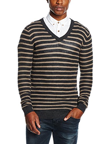 -. Title : Antony Morato Herren Pullover Maglia A Righe Scollo V Con Costa in Contrasto