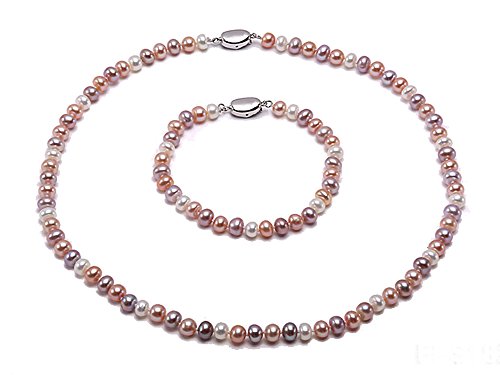 -. Feature : Beautiful necklace and bracelet set made of 5-6mm white?pink and lavender flat cultured freshwater pearls. / The necklace has a length of 18 inches and the bracelet 8 inches. Both are closed by an argent gilded clasp. / The necklace and bracelet set features lustrous, smooth and similar-sized pearls with slight blemishes. / We have several major pearl cultivation farms in China, our product categories vary from all styles of freshwater and saltwater pearl jewelries to dozens of semi-gemstone varieties.you are welcome to order in bulks and great offers will be provided. / Any question or request on our pearls quality, size, setting, metal type, please feel free to contact us! We are always here to help you.