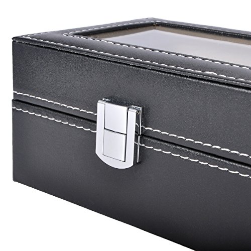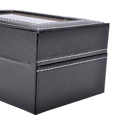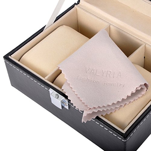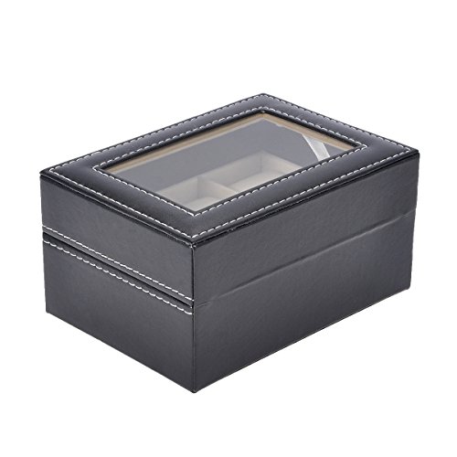 VALYRIA Watch Box Small 3 Mens Black Leather Display Glass Top Jewelry Case Organizer