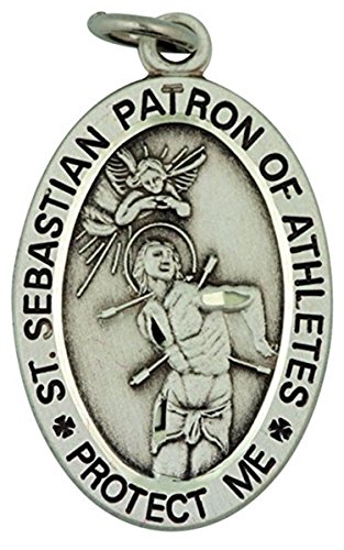 -. Binding : Jewelry -. Brand : Religious Gifts -. Department : womens -. Feature : Medal - Sterling Silver - 7/8 Inch (H) / Chain - Rhodium Plated - 18 Inch (L) / Features Saint St Sebastian - Catholic Patron of Sports / Gift Boxed / Made in the USA -. Label : HMHReligiousMfg -. Manufacturer : HMHReligiousMfg -. ProductGroup : Jewelry -. ProductTypeName : FASHIONNECKLACEBRACELETANKLET -. Publisher : HMHReligiousMfg -. Studio : HMHReligiousMfg -. Title : Sterling Silver Saint St Sebastian Female Sports Athlete Medal Pendant, 7/8 Inch