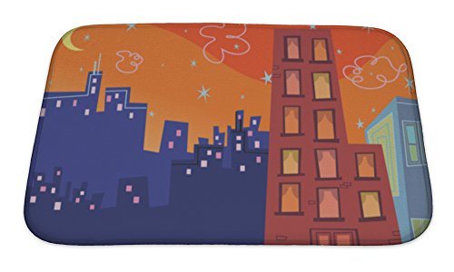 Gear New Cartoon Groovy Buildings Silhouettes Bath Rug Mat No Slip Microfiber Memory Foam