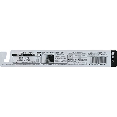 -. Binding : Health and Beauty -. EAN : 8100000001495 -. Feature : Toothbrush -. IsAdultProduct : 0 -. Label : Systema -. Manufacturer : Systema -. PackageQuantity : 1 -. ProductGroup : Health and Beauty -. ProductTypeName : HEALTH_PERSONAL_CARE -. Publisher : Systema -. Studio : Systema -. Title : Systema Toothbrush Four Columns Compact Usually Three Pack