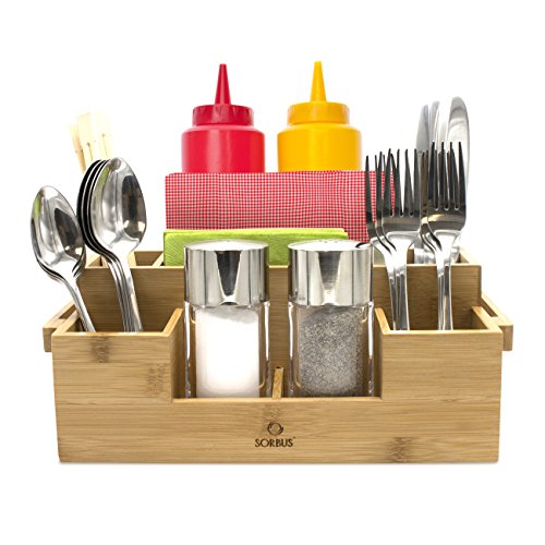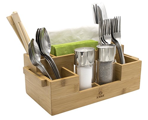 Sorbus Bamboo Utensil Caddy — Silverware Caddy Napkin Holder and Condiment Organizer — Multi-Purpose Wooden Caddy—Ideal for Kitchen, Dining, Buffet, Tailgating, Picnics, etc