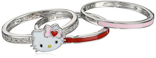 -. Title : Hello Kitty Sterling Silver Heart Bow Enamel Swarovski Crystal Shank and Enamel Bands Stackable Ring, Size 7