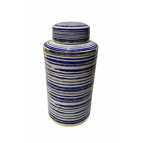 Benzara Ceramic with Horizontal Stripe Covered Jar, Blue/White