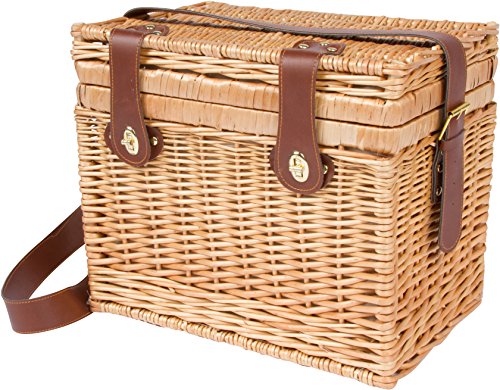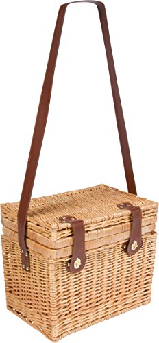 Trademark Innovations 15" Wicker Picnic Basket with Leather Carry Strap
