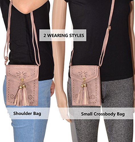 - Chic Design: Refreshing hollow carved & tassel decoration design, make it fashionable and matchable for any casual outfit. Fast snap closure, easy access to your belongings. Adjustable shoulder strap, provide 2 wearing style of crossbody bag or shoulder bag.
