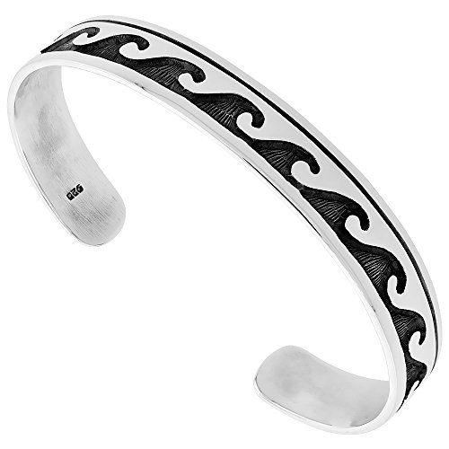 -. Title : Sterling Silver Cuff Bracelet Wave Design Handmade 7.25 inch
