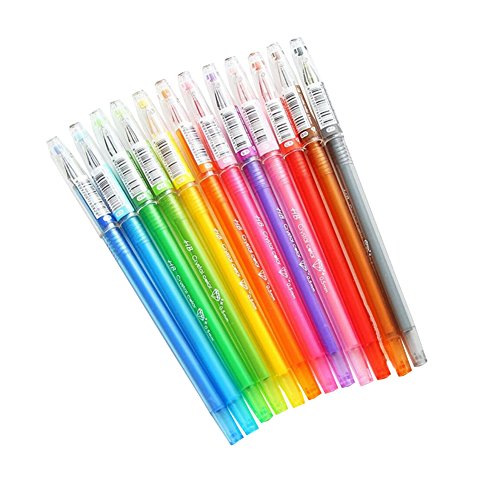-. Feature : ECO-FRIENDLY & SAFE:Our diamond color gel ink pen is NON-TOXIC and NON-SMELL.Harmless to your skin and body. / URABLE & FLUENT:Our colored pen allows fluent and colorul writing and painting,and its inside pen refills can be replaced.No smell when using.Let you/your children enjoy a smooth writing and then start to love writing. / GOOD LOOKING & BEAUTIFUL COLOR:Beautiful color,pretty streamline pen body and diamond shape of pen top.0.5mm fine point gives you comfortable and unusual feeling while writing.12 vibrant colors are available(Blue,Black,Red,Green,Purple,Light green,Light pink,Pink,Azure,Orange,Yellow,Brown) to meet all your needs. / HIGH QUALITY & WIDE USAGE:Our colored gel ink pen is made of poisonless and hygenic material.Pretty and practical gift for your kids,friends or colleges.Ideal for Scrapbook,Journals,Drawing,Coloring,Diary,Greeting Cards,Party Invitations,Crafing,Doodling,Decorating,Tattoos and more. / CONVENIENT & PORTABLE:No smearing or globby gel marks on your artwork or writing. 12 in 1 Box,great in hand,and easy to carry on the go.