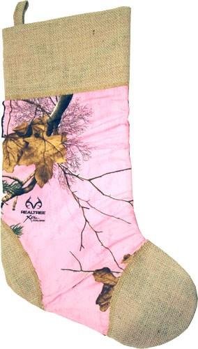 Realtree Christmas Stocking Pink - Burlap and Pink Oak