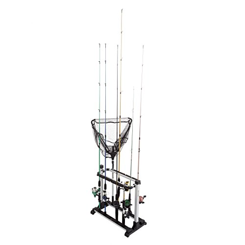 Fishing Rod Rack- Aluminum Freestanding Floor Storage, Organizer Stand for Home or Garage, Fits 10 Freshwater or Saltwater Rods by Wakeman Outdoors