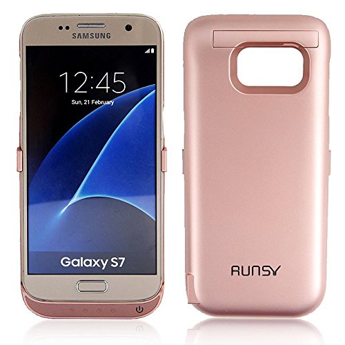 RUNSY S7 Battery Case, 4500mAh Rechargeable Extended Battery Charging Case for Samsung Galaxy S7, External Battery Charger Case, Backup Power Bank Case with Kickstand (Black)