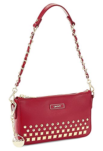DKNY Donna Karan Red Shiny Saffiano Studded Small Crossbody Shoulder Bag