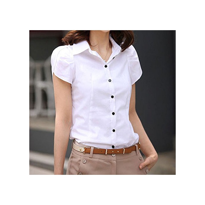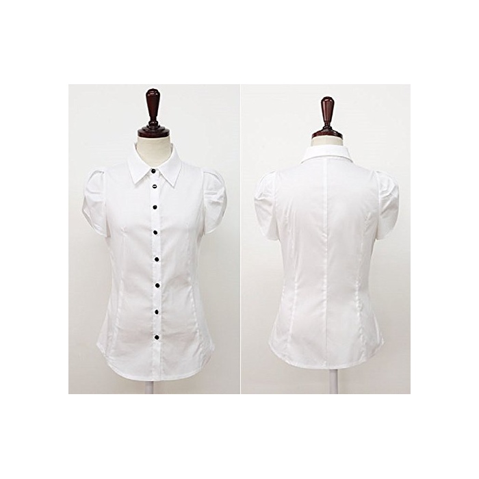원본상품명: kazan 半袖 ブラウス スリム タイプ チュリップ袖 S ~ XL 大きい サイズ も (02 白Mサイズ)